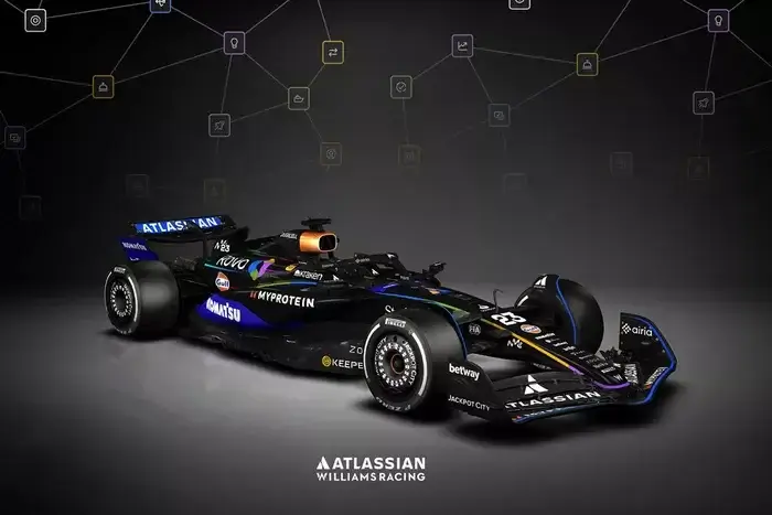 Ранее Williams тоже показала одноразовую ливрею для вегасского уик-энда. В Williams сделали болид FW47 преимущественно чёрным с радужными акцентами и синими понтонами по просьбе титульного партнёра Atlassian и его инструмента на базе ИИ Rovo.