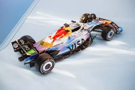 Переливающиеся цвета появились на обычно белых носовом обтекателе, боковых понтонах и крышке двигателя болида VCARB 02, за руль которого сядут Исаак Хаджар и Лиам Лоусон. Это уже четвёртая и последняя специальная ливрея команды в сезоне 2025 года. Англо-итальянская команда поясняет, что новый дизайн вдохновлён картой Holo Card — свежим предложением Visa от партнёра Cash App, с отсылкой к смелому, энергичному духу и эстетике яркой ночной жизни города-гостя уик-энда.