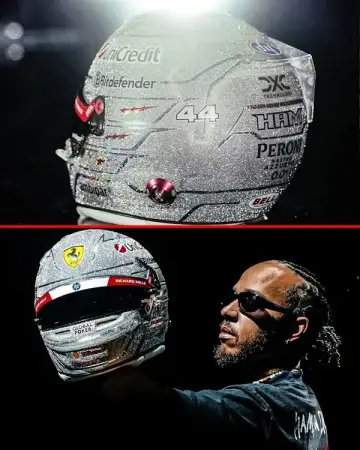 Накануне ночной гонки в Лас-Вегасе Льюис Хэмилтон представил один из самых эффектных шлемов сезона: полностью серебристый, с миллионами микро-блёсток, которые идеально отражают неоновые огни Стрипа. Вместе с напарником Шарлем Леклером британец выйдет на старт в специальных ретро-красных комбинезонах Ferrari, посвящённых 20-летию партнёрства с Puma.