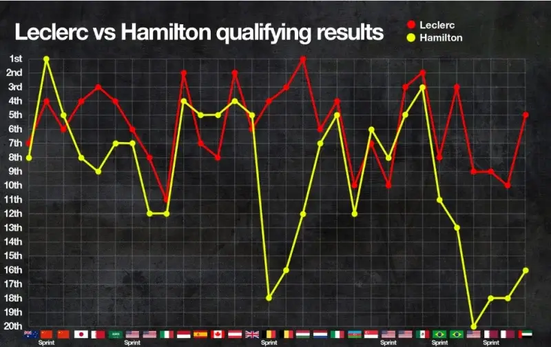 Знаменитое умение Льюиса работать с резиной, которое часто спасало его в Mercedes эпохи граунд-эффекта, когда Джордж Расселл был быстрее на одном круге, не стало явным козырем против Леклера. Исключением стала лишь ранняя вспышка в Китае с победой в спринте.
