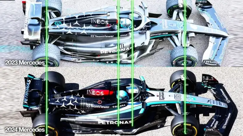 Главная дилемма для Mercedes заключалась в следующем: продолжать проектировать машину для низкой посадки или попытаться сохранить прогресс конца 2022 года и искать прижимную силу на чуть большей высоте.