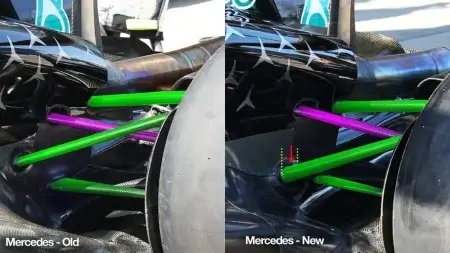 Добившись значительного прогресса с системой анти-клевков (anti-lift) в задней подвеске на старте 2025 года, что критично для контроля механической платформы и аэродинамики, Mercedes попыталась сделать следующий шаг, внедрив модифицированную геометрию задней подвески в Имоле.