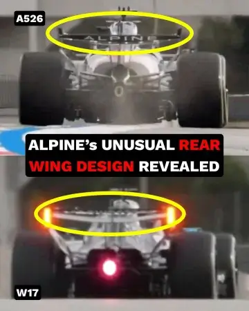 Команда Alpine выбрала радикально иной подход к проектированию заднего антикрыла для своего болида A526. В отличие от остальных машин на стартовой решетке, подвижная плоскость здесь вращается вокруг шарнирной оси, расположенной вблизи передней кромки элемента.