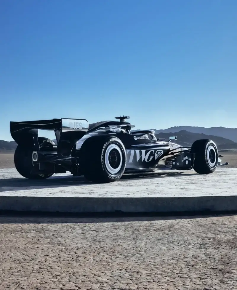 Команда раскрыла асимметричную раскраску: одна сторона преимущественно белая (с лёгким серым оттенком), другая — чёрная. Такой подход напоминает некоторые исторические эксперименты в Формуле-1 и сразу выделяет Cadillac среди остальных участников.